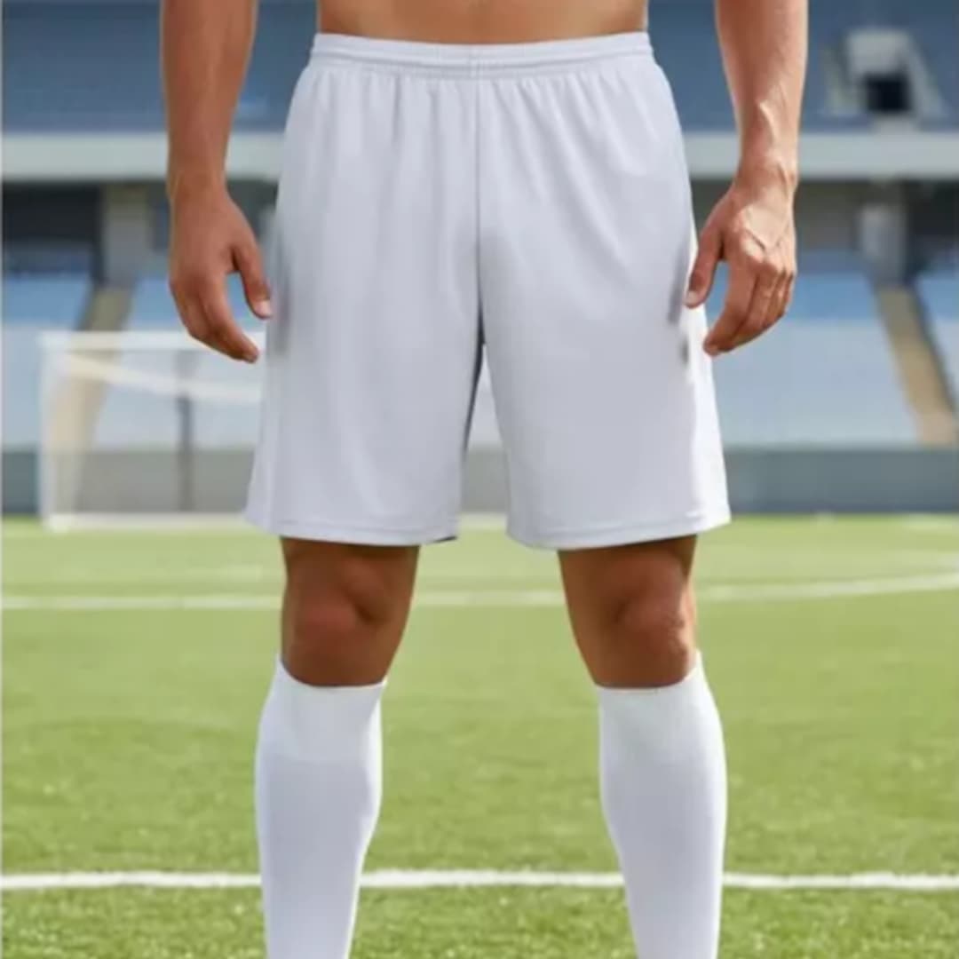 Short de fútbol liso blanco, liviano y cómodo, ideal para entrenamientos y partidos. Tela transpirable de secado rápido para máximo rendimiento.